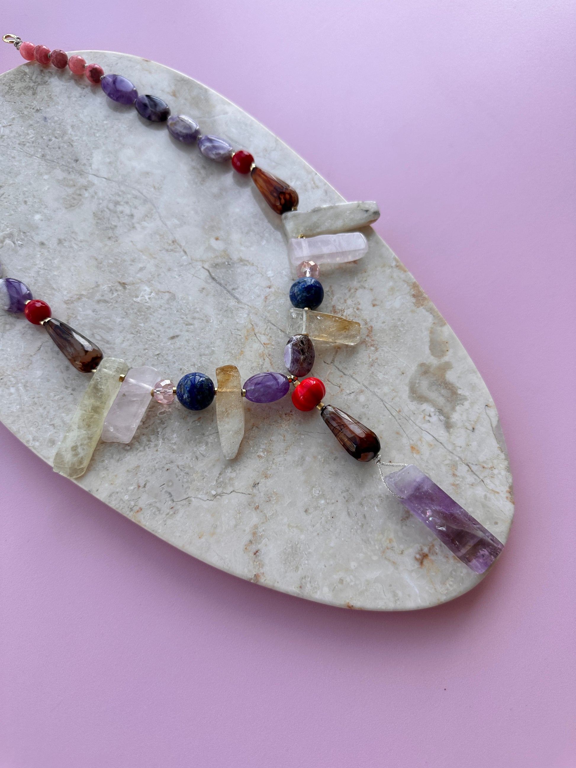 Collar Tribu Nuevos Ciclos, un collar imponente que sale de lo común. Esta pieza pertenece a la colección "Maxi", donde el volumen y el atrevimiento en los diseños son esenciales, y todos los collares Tribu están inspirados en la joyería de tribus africanas. Este diseño en particular simboliza los nuevos ciclos en tu vida, la intención consciente, salir de la zona de confort, ir por lo nuevo y abrirte a la aventura. Con una longitud de 43 cm, cuenta con todos sus metales enchapados en oro de 18k.
